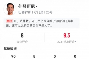 体育资讯4月16日讯 欧冠1/4决赛次回合,多特3-1总比分3-5巴萨。此役什琴斯尼虽有一次送点但全场高接低挡8次扑救,球员全场重点数据如下↓