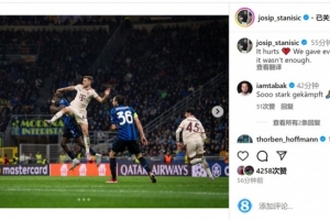 体育资讯4月17日讯 欧冠1/4决赛次回合比赛,斯坦尼西奇踢满全场,拜仁客场2-2战平国米,两回合总比分3-4出局。