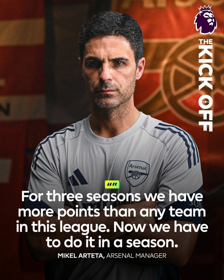阿尔特塔在发布会上说道:“三个赛季以来,我们的积分比联赛中任何其他球队都多,这是令人难以置信的。这就是我们始终保持稳定表现的原因。”