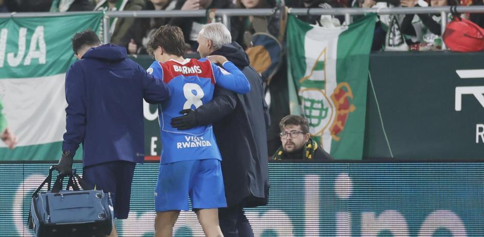 报道称,巴里奥斯在国王杯对阵皇家贝蒂斯的比赛中,于第50分钟因右侧大腿突发不适离场,当时他正准备接球,赛后初步检查便显示伤情不容乐观。
